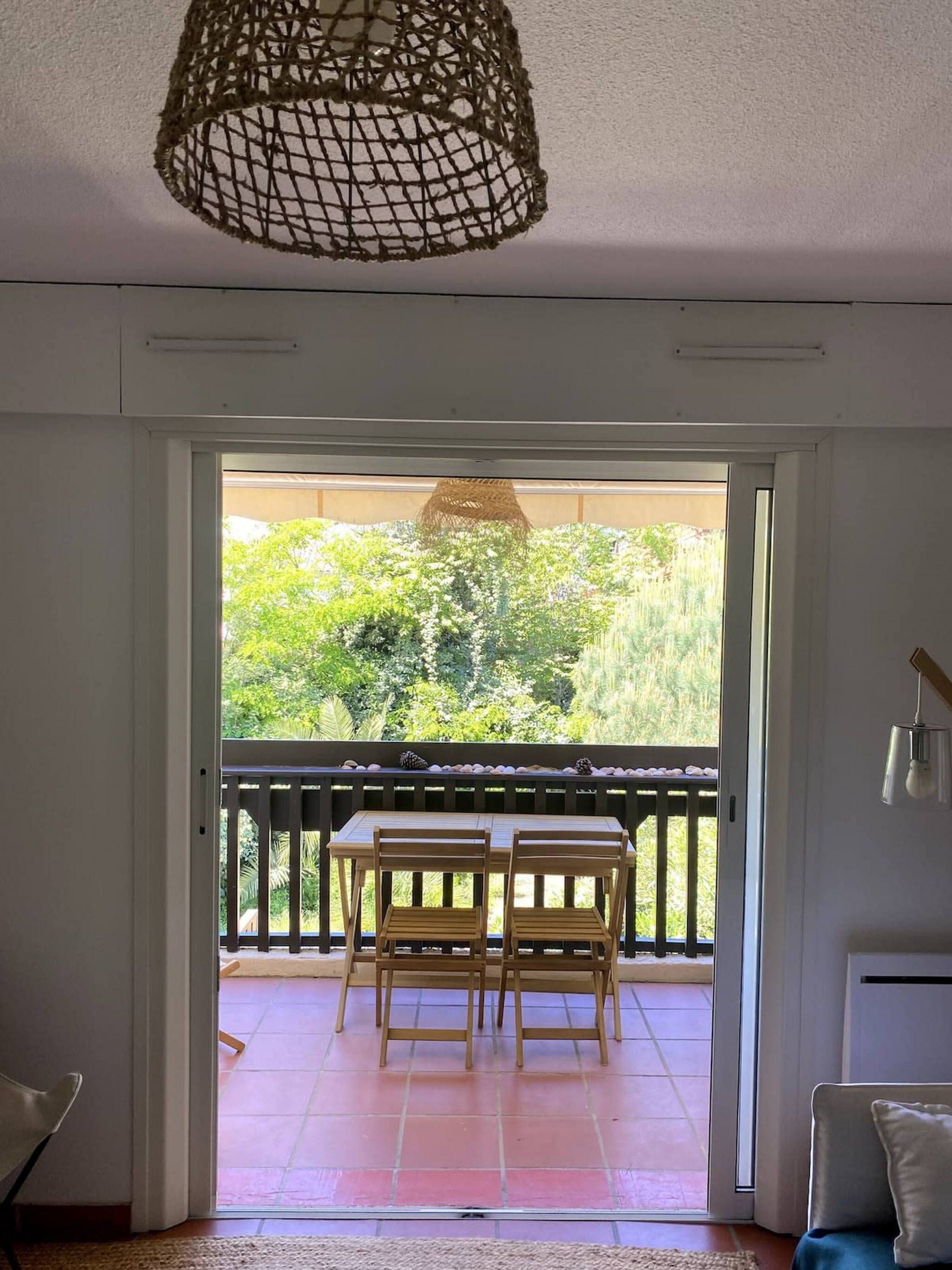Extérieur : Le balcon avec vue sur les pins est un véritable atout pour profiter des moments de calme en plein air, entouré par la nature. C’est l’endroit parfait pour savourer votre café du matin ou un verre en fin de journée.