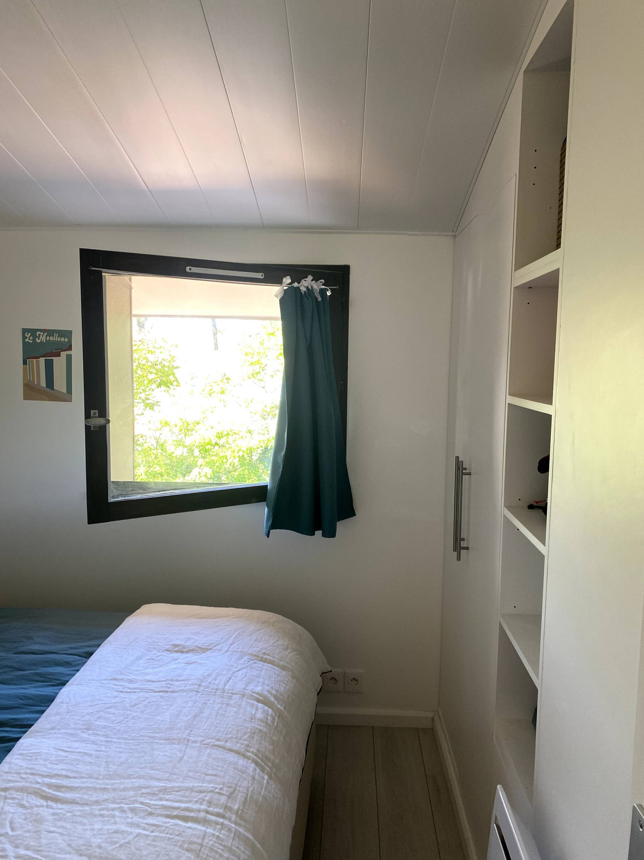 À l’étage, vous trouverez une chambre calme et reposante, idéale pour une bonne nuit de sommeil après une journée au bord de la mer. La salle d’eau séparée complète cet espace, offrant confort et intimité.