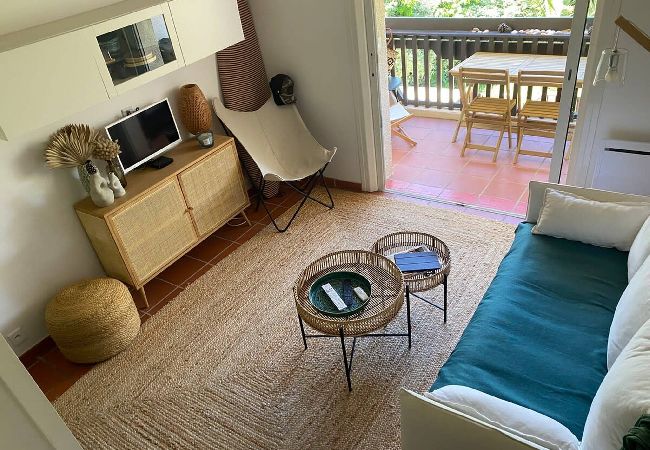 Équipements : Kitchenette équipée, télévision, balcon avec vue sur les pins, espace buanderie, WC séparés, linge de maison disponible sur demande, internet, ménage de fin de séjour inclus.